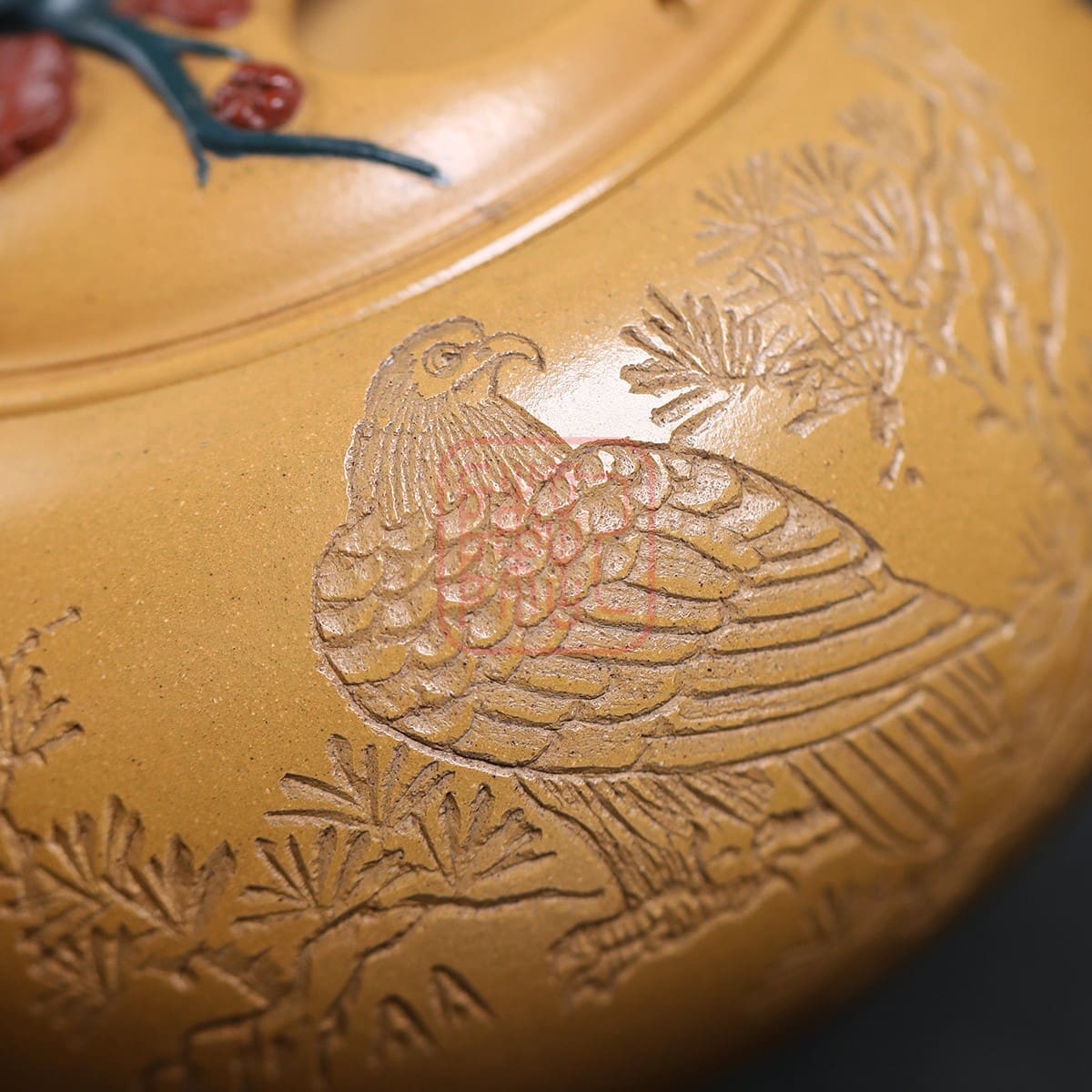 Đặc biệt, tác phẩm này còn mang giá trị truyền thừa độc bản, phần trang trí (Nghệ thuật Khắc) được thực hiện bởi chính thân phụ ông, nghệ nhân Nhậm Trọng Quang. Sự kết hợp giữa kỹ pháp tạo hình vững vàng của con trai và nghệ thuật trang trí đỉnh cao của cha đã biến chiếc ấm này thành một chứng tích sống động, một tác phẩm giao thoa thế hệ của cả một dòng tộc lừng danh trong lịch sử gốm Tử Sa.